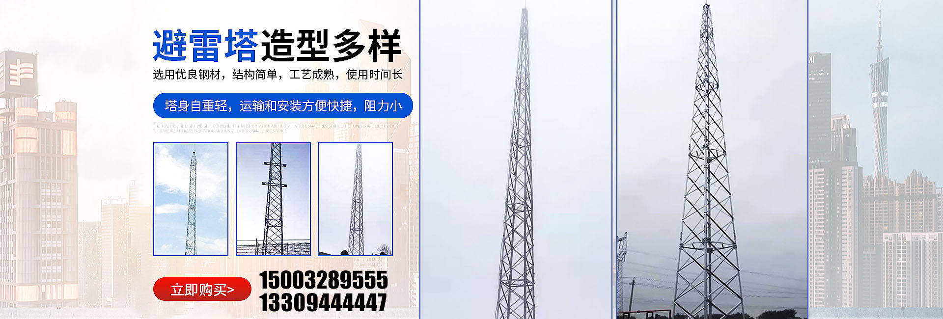 我公司主營:避雷塔、煙筒塔、瞭望塔、監(jiān)控塔、訓練塔、電力架構、測風塔、工藝裝飾塔、氣象觀測塔、廣播電視塔、電力塔等, 產(chǎn)品銷售往全國各地,收到廣大用戶的好評。